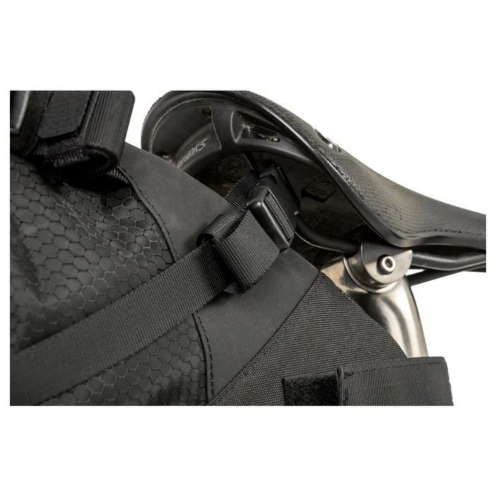 Tato taška Venture je nezbytnou součástí každého bikepackingového výletu. Brašna se jednoduše přichytí pod sedlo a ani si nevšimnete, že ji vezete do doby, než budete potřebovat suché oblečení nebo věci na spaní. Voděodolný Dryliner materiál a rolovací uzávěr udrží vaší výbavu vždy suchou dokonce i v nejnáročnějších podmínkách, takže se můžete soustředit na zážitky z jízdy a všechny zajímavosti okolo. Díky zesílenému materiálu a robustnímu designu brašna přežije všechny možné výlety i mimo civilizaci.