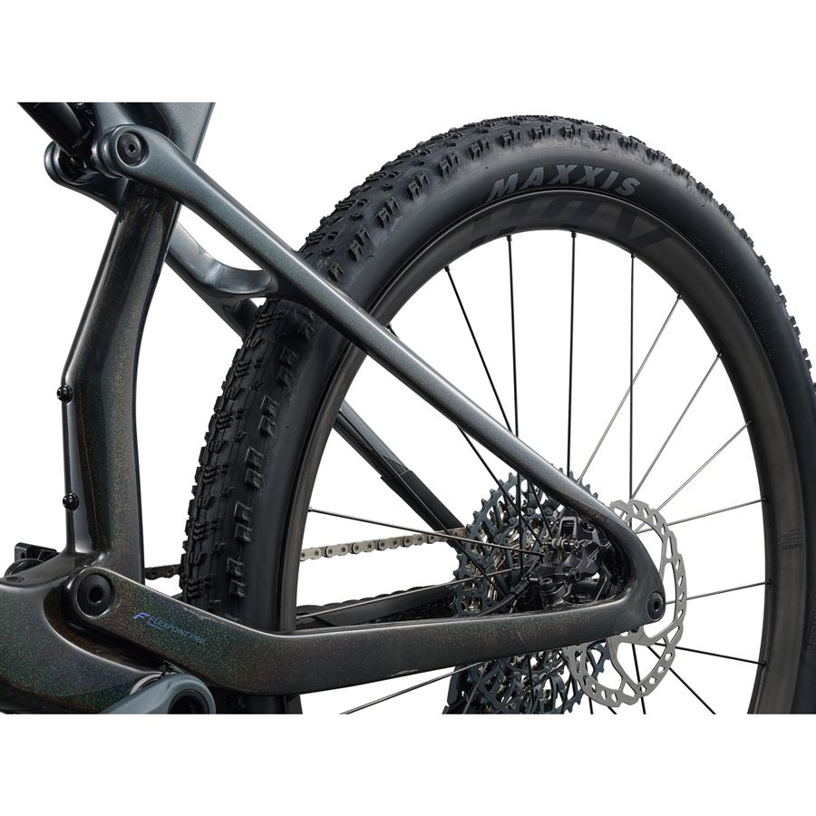 RÁM Advanced SL-grade composite front and rear triangles, 120mm FlexPoint Pro suspension, flip chip, 12x148mm thru-axle