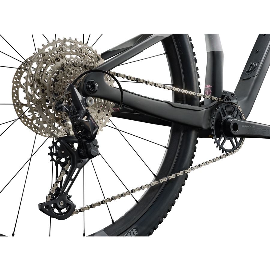 RÁM Advanced SL-grade composite front and rear triangles, 120mm FlexPoint Pro suspension, flip chip, 12x148mm thru-axle, internal storage