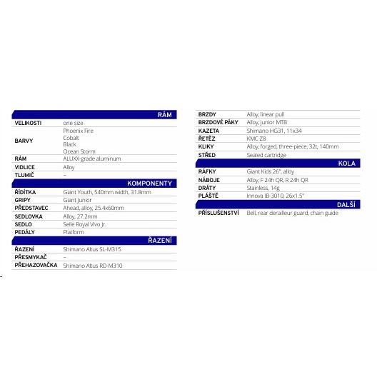Docílit nízké hmotnosti celého kola se nám podařilo také kvalitními (a lehkými) komponenty, které jsou navržené speciálně pro dětská kola. Zmínit bychom měli lehce ovladatelné ráfkové brzdy typu V-brake, přesné řazení a přehazovačku Shimano Altus, hliníkové kliky, ráfky a náboje kol nebo pláště s optimální šířkou a vzorkem.