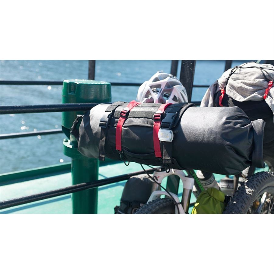 skvělá alternativa k batohu nebo brašnám • vnitřní nepromokavý obal • rychloupínací mechanismus pro řídítka 24,4 i 31,8 mm • stahovací popruhy