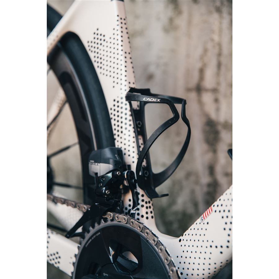 Doplňte své kolo o tento exkluzivní ultralehký košík na lahev CADEX. Nabízí bezpečné držení lahve a vysokou odolnost při minimální hmotnosti – váží pouhých 19 gramů.