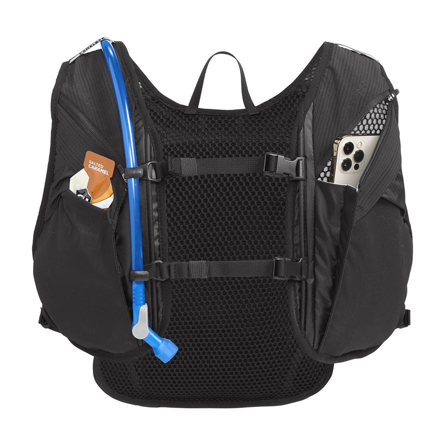 Minimalistická biková vesta určená pro špičkové sportovce. Pobere vše, co potřebujete pro celodenní závod. Je dokonale odvětraná díky prodyšné 3D síťovině na zádech a popruzích. Dva hrudní pásy vestu perfektně usadí na těle. Na popruzích máte kapsu na telefon, abyste ho měli po ruce. Objem navyšuje strečová kapsa na větrovku nebo vestu. Reflexní prvky jsou samozřejmostí.