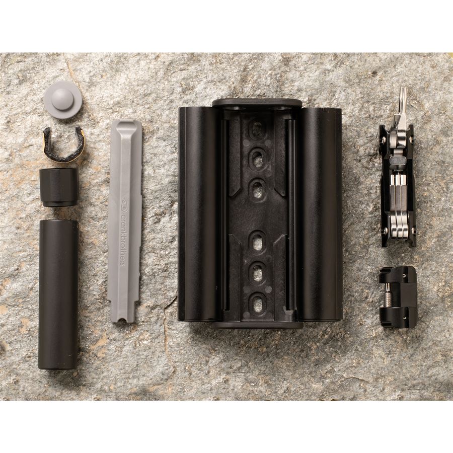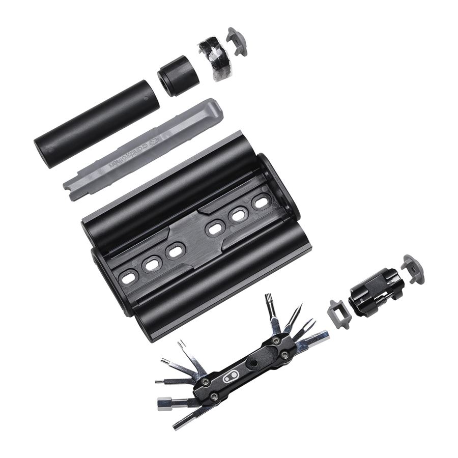 Komplexně řešené nářadí s prostorem na CO2 bombičku, které se montuje místo košíku nebo na jiná k tomu určená místa na rámu.