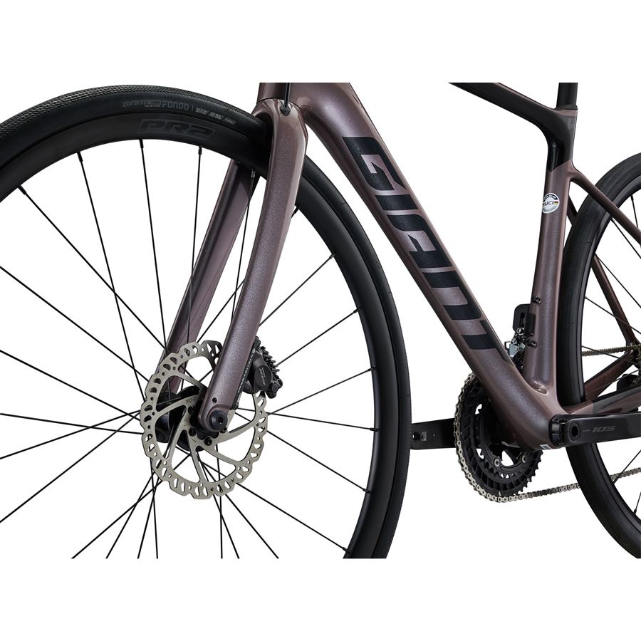 K docílení vysokého komfortu pomáhají především ploché a poměrně tenké sedlové vzpěry a karbonová sedlovka D-Fuse, která díky specifickému „D“ tvaru umožňuje mírné „pružení“ a pomáhá tak tlumit vibrace. Technologii D-Fuse využívají i řídítka, která ve směru dolů mírně pruží (zatímco nahoru poskytují vysokou tuhost). K vyššímu pohodlí přispívají také širší bezdušové pláště Giant Gavia Fondo.