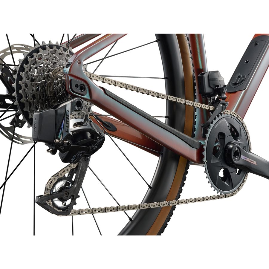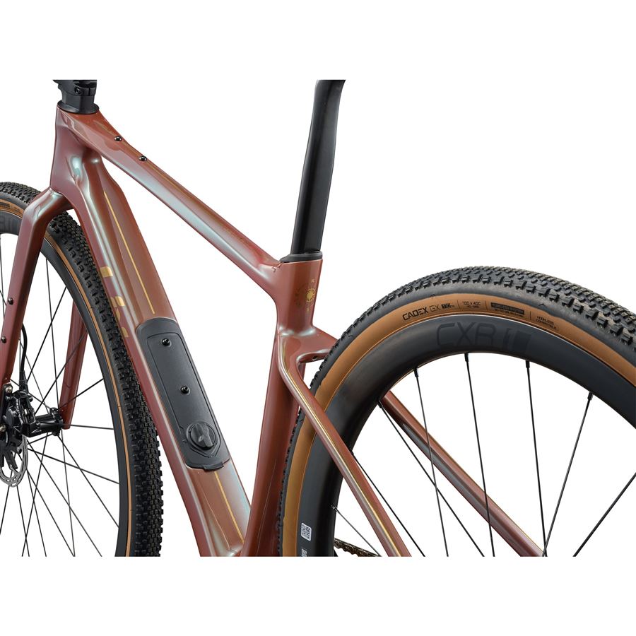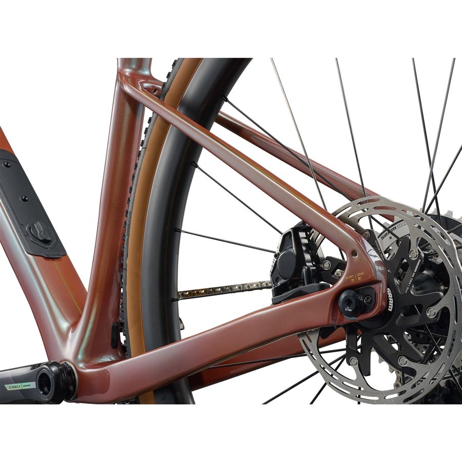 Karbonový rám Advanced Composite a karbonová vidlice Advanced SL Composite umožňují svižné zrychlení, zatímco vnitřní vedení brzdových hadic a bowdenů zjednodušuje kokpit a vytváří prostor pro potřebné doplňky. Moderní geometrie rámu přináší agresivnější jízdní pozici, zlepšuje trakci a stabilitu a poskytuje více jistoty ve sjezdech a vyšších rychlostech. Snadno přístupný úložný prostor ve spodní rámové trubce umožní bezpečně přepravovat nářadí, výživu a další nezbytnosti.