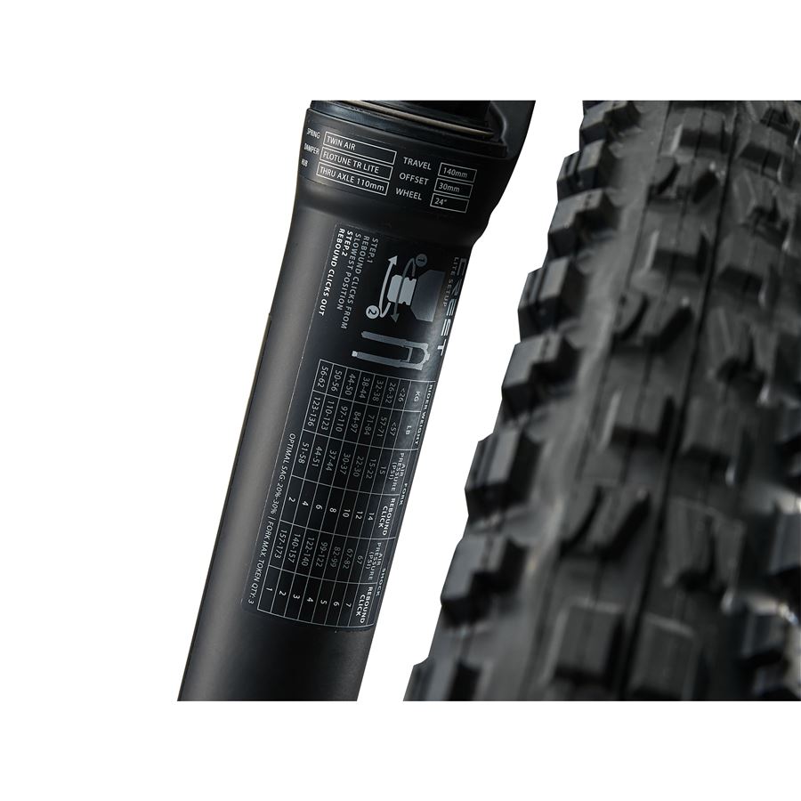 Kola TRA WheelSystem s technologií WideGuard přinášejí lehčí a pevnější ráfky, takže jezdci mohou používat nižší tlaky v pneumatikách pro lepší trakci a s menším rizikem defektu nebo poškození ráfku. Kola o velikost 24 palců jsou navržená speciálně pro mladé jezdce, aby jim pomáhala manévrovat a zvládat technické traily. Teleskopická sedlovka ovládaná z řídítek umožňuje snadno optimalizovat jízdní pozici podle toho, zda se jede ve stoupání nebo ve sjezdu.