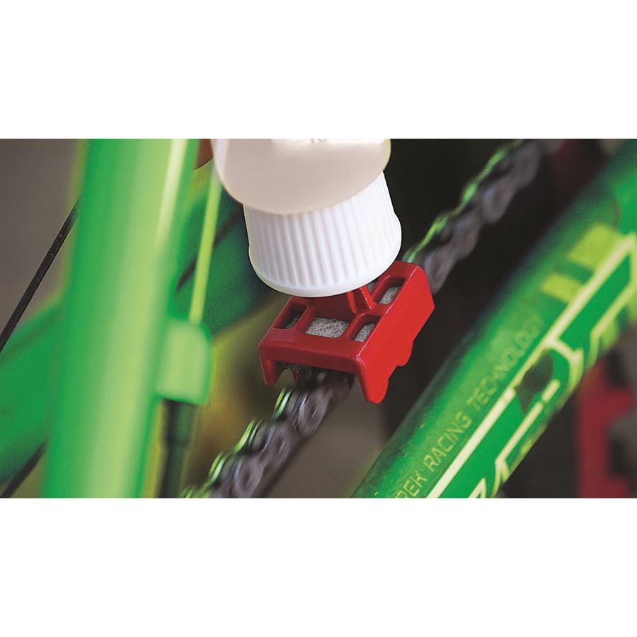 Konec plýtvání mazivem, které často končí nejenom na řetězu, ale také na zadní stavbě kola, ráfcích nebo na podlaze garáže! Speciální olejnička pro jízdní kola No Drip Chain Luber důkladně promaže každý článek, a neukápne vám ani kapka. Prázdnou olejničku naplňte jakýmkoliv mazivem Finish Line, lehce přiložte aplikátor na řetěz, mírně zmáčkněte a protáčejte řetěz. Ušetříte až 50 % maziva! Dvě náhradní houbičky v ceně.