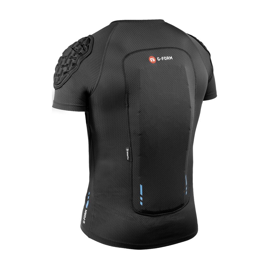 Lehké celorozepínací triko G-Form s ochranou ramen, žeber a odnímatelným chráničem páteře. Triko je z lehkého materiálu, který skvěle odvádí přebytečné teplo, větrá a nabízí tak pohodlí i při celodenním zápřahu v bikeparku, ale zároveň je dostatečně odolný, aby přežil i nějaký ten pád. Chránič ramen a žeber je vyroben z nového materiálu SmartFlex Stretch, který se ještě lépe přizpůsobí vašemu tělu a všelijakým pohybům, a přitom ho dokáže ochránit v případě pádu stejně dobře jako standardní pěna SmartFlex. Tato pěna je pak použita na odvětraném a odnímatelném chrániči páteře společně se spodní vrstvou z měkké pěny pro výjimečný komfort nošení a bezchybnou ochranu páteře. Charakteristická funkce pěny SmartFlex zůstává stejná i zde: během jízdy je flexibilní, skvěle se přizpůsobí tělu, neomezuje v pohybu a až v okamžiku pádu celá ztuhne, vytvoří pevný chránič, rozprostře tlak nárazu na větší plochu a ochrání tím jezdce před poraněním.