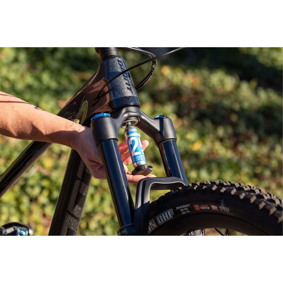 Lehká, pevně zajištěná a neviditelná, ale přitom velmi snadno dostupná, když ji budete potřebovat - praktická sada Clutch Fork Storage je uložena zespodu v hlavové trubce, kde díky ní budete mít vždy po ruce C02 bombičku a redukci na ventilek (aplikátor) pro rychlé nafouknutí kola po defektu.