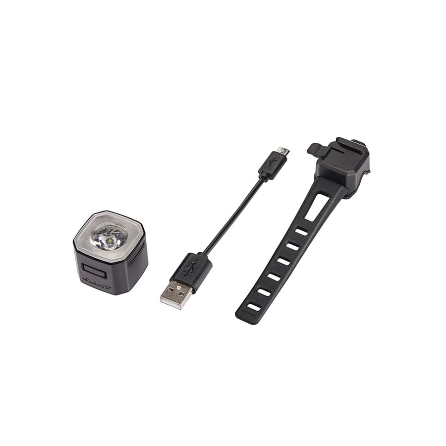 součástí balení je držák na řídítka a nabíjecí USB kabel