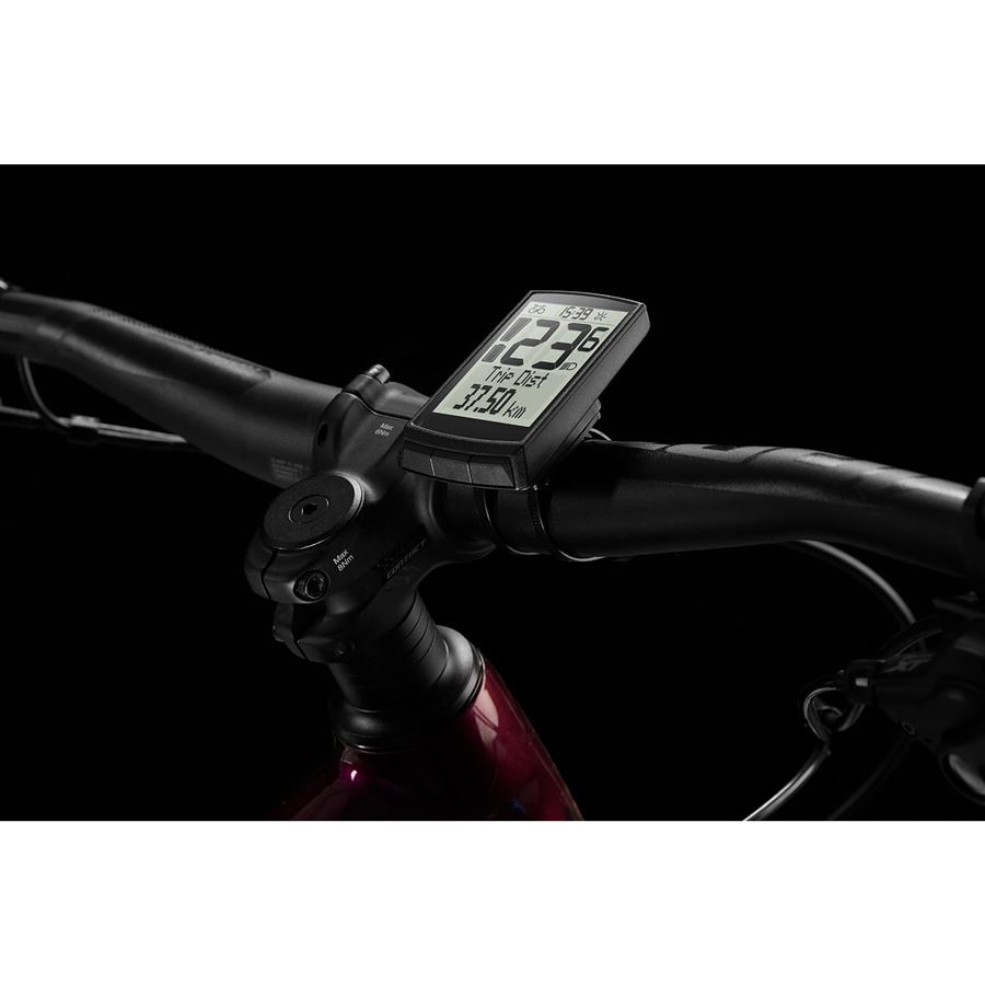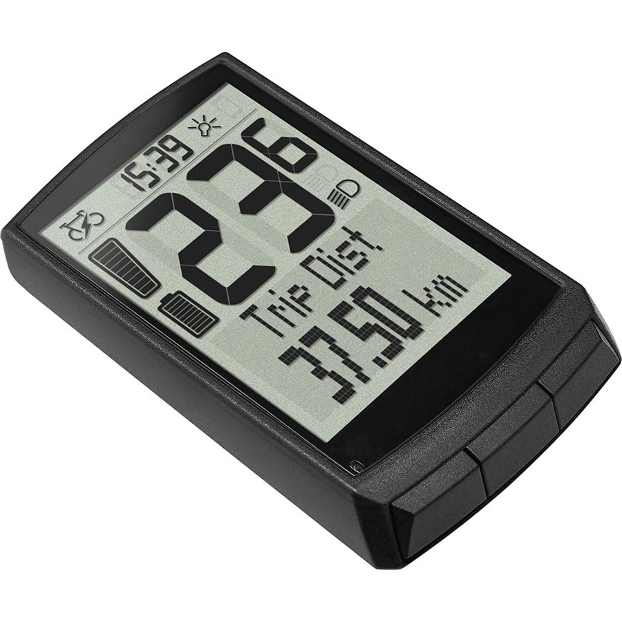 zobrazuje tyto informace o jízdě: aktuální rychlost, čas jízdy, denní a celková ujetá vzdálenost, výkon jezdce (ve Wattech), kadence, kalorie, teplota