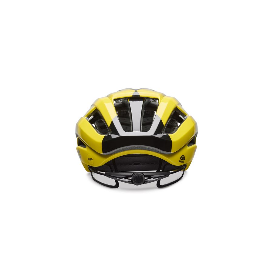 Lehčí, rychlejší, odvětranější. Aries Spherical je nejdokonalejší helma, jakou jsme kdy vyrobili. Profil jsme zmenšili na minimum, aby co nejlépe kopíroval siluetu hlavy. To spolu s nízkou hmotností a maximálním odvětráním pomocí 24 otvorů Wind Tunnel dává neuvěřitelné pohodlí při jízdě. Ale to hlavní se nachází uvnitř – Spherical Technology Powered by MIPS. Tato technologie je založena na principu kloubu. Skořepina se skládá ze dvou částí (polokoulí) vložených do sebe a spojených pomocí žlutých elastomerů. Celý systém vytváří jakési odpružení, které absorbuje síly v případě nárazu – polokoule se vůči sobě mohou pohnout a elastomery tlumí energii. Vnější skořepina je navíc vyrobena z tvrdšího materiálu, vnitřní je vyrobena z měkčího materiálu (technologie Progressive Layering). Celou přilbou navíc prochází speciální výztuha Aura Reinforcement Arch. Usazení na hlavě zajišťuje patentovaný upínací systém Roc Loc 5+ Air spolu s antimikrobiálními výstelkami Ionic+.