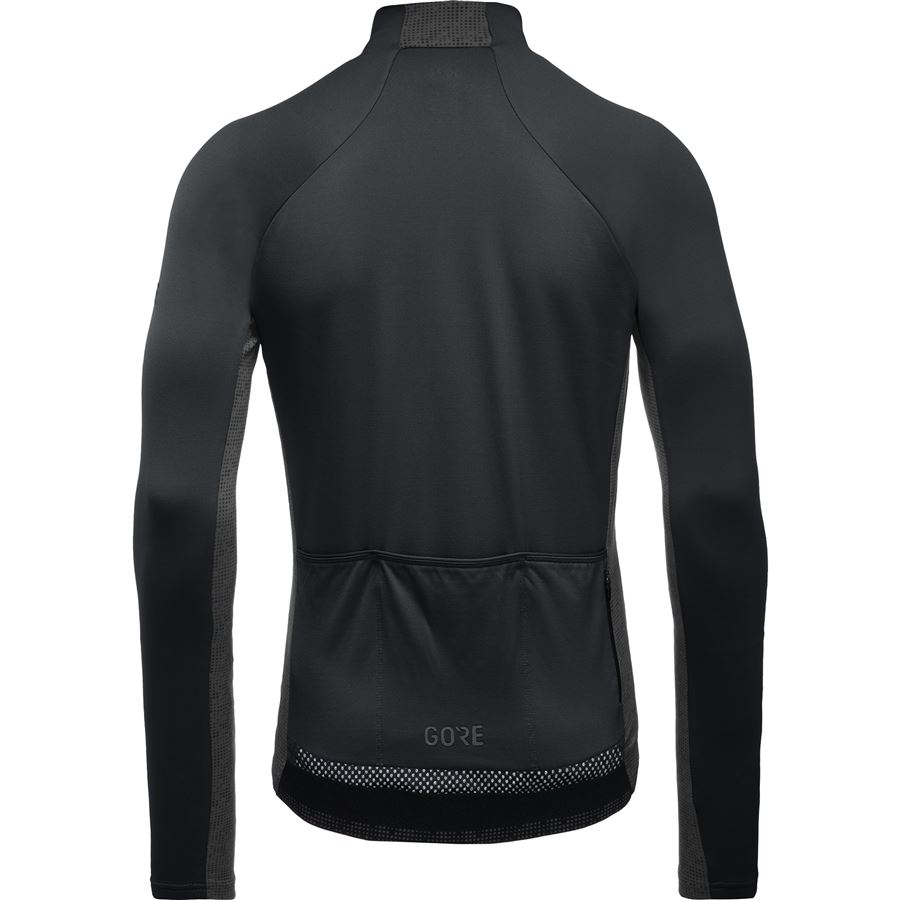 Zónové rozdělení tkanin - přední část termo-izolační látka, méně hřejivé boční panely a ve spodní části rukávů, vsadka ze síťoviny v zadní části zajišťuje odvětrávání