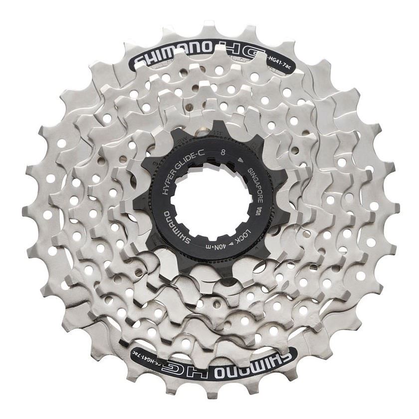 8rychlostní kazeta Shimano s ocelovými pastorky.