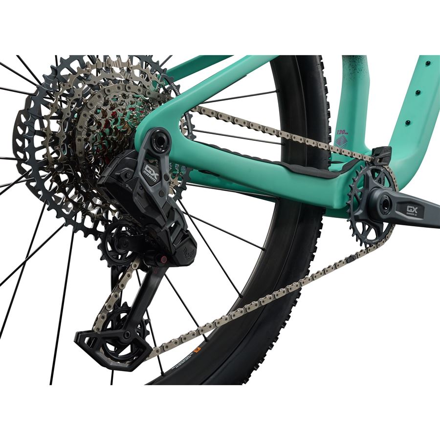 RÁM Advanced SL-grade composite front and rear triangles, 120mm FlexPoint Pro suspension, flip chip, 12x148mm thru-axle