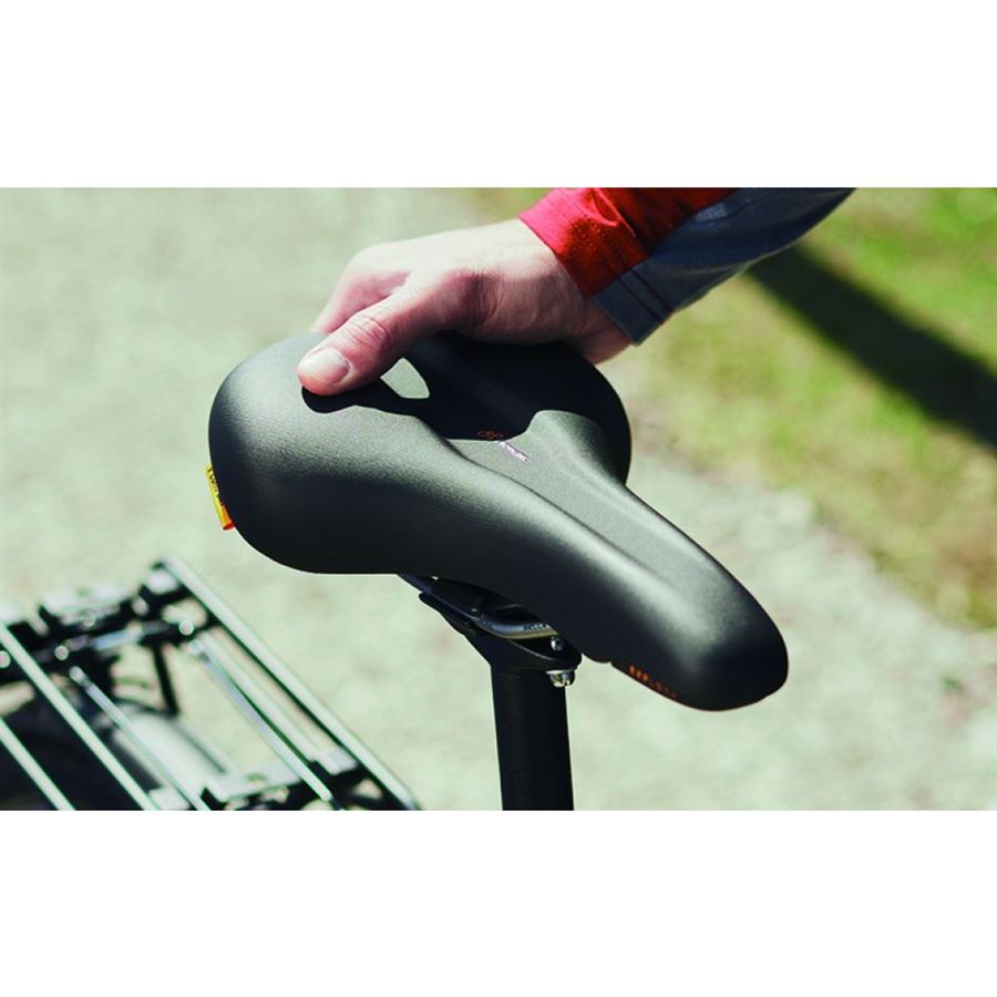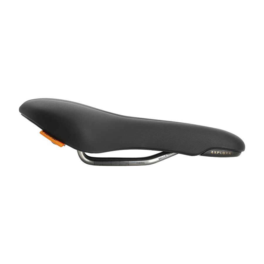 Sedlo Explora s ergonomickým středovým kanálkem je navrženo tak, aby bylo pohodlné na jakémkoliv povrchu. Nezáleží tedy, jestli jedete po silnici nebo v lehkém terénu. Polstrování Royal Gel a integrovaný tlumič otřesů v zadní části sedla (funguje podobně jako elastomer) se postarají, abyste si jízdu mohli bezstarostně užít. Lehce prohnutý profil tohoto sedla dovolí rychle najít tu správnou jízdní pozici a zároveň funguje i jako opora v prudkých stoupáních.