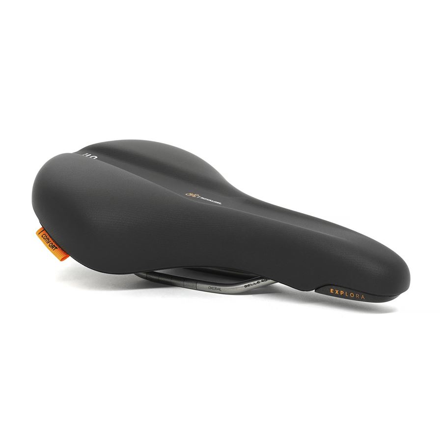 Sedlo Explora s ergonomickým středovým kanálkem je navrženo tak, aby bylo pohodlné na jakémkoliv povrchu. Nezáleží tedy, jestli jedete po silnici nebo v lehkém terénu. Polstrování Royal Gel a integrovaný tlumič otřesů v zadní části sedla (funguje podobně jako elastomer) se postarají, abyste si jízdu mohli bezstarostně užít. Lehce prohnutý profil tohoto sedla dovolí rychle najít tu správnou jízdní pozici a zároveň funguje i jako opora v prudkých stoupáních.