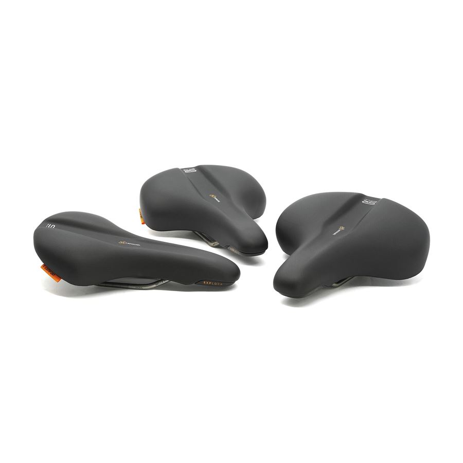 Sedlo Explora s ergonomickým středovým kanálkem je navrženo tak, aby bylo pohodlné na jakémkoliv povrchu. Nezáleží tedy, jestli jedete po silnici nebo v lehkém terénu. Polstrování Royal Gel a integrovaný tlumič otřesů v zadní části sedla (funguje podobně jako elastomer) se postarají, abyste si jízdu mohli bezstarostně užít. Lehce prohnutý profil tohoto sedla dovolí rychle najít tu správnou jízdní pozici a zároveň funguje i jako opora v prudkých stoupáních.