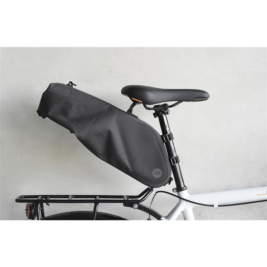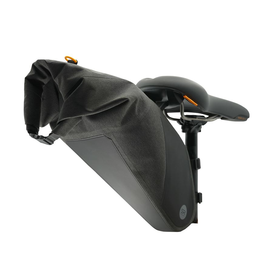 Vlastnosti: voděodolný materiál, 2 poutka na přichycení k sedlovce, inbus na nastavení sklonu, poutko na blikačku, ramenní popruh pro použití mimo kolo