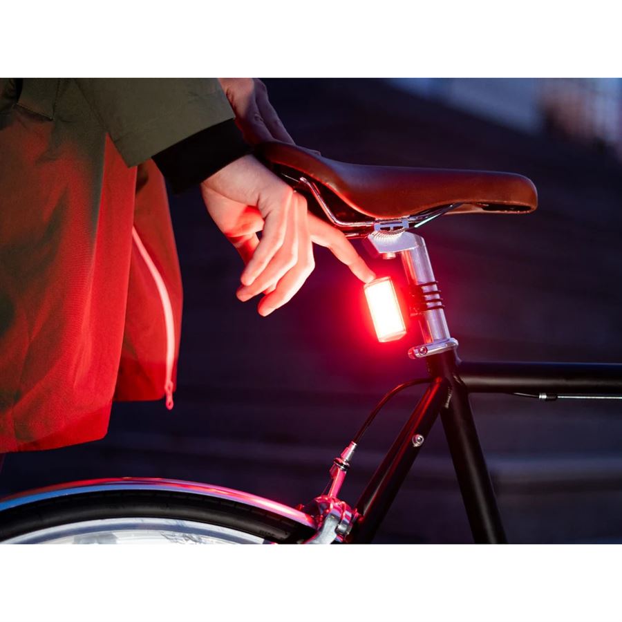 Magnetický držák se zadním světlem. Viditelnost 270° zaručí bezpečnost při pohybu ve městě a jakmile v pořádku dorazíte do cíle, jednoduše sundáte světlo z magnetického držáku a světlo vám tak nikdo neukradne. Snadná instalace magnetického držáku gumičkami na sedlovku. Výkon 40 lumenů, výdrž až 20 hodin, 6 světelných módů a dobíjení pomocí USB-C portu.