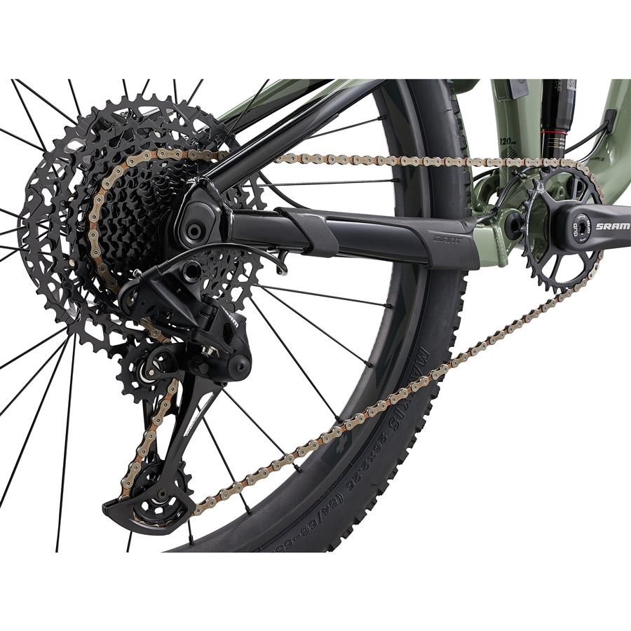 Vzduchová vidlice RockShox poskytuje zdvih 120 mm a vybavena je zamykáním z řídítek. Pro vysokou tuhost má Boost pevnou osu 110x15 mm, stejný standard je použit i na zadním kole (pevná osa 148x12 mm). Zadní odpružení se zdvihem 120 mm má na starosti vzduchový tlumič RockShox. Moderní 12-rychlostní řazení nabízí i při jediném převodníku dostatek převodů do výjezdů i na rychlejší pasáže. Spolehlivý brzdný výkon zajistí hydraulické brzdy Shimano.