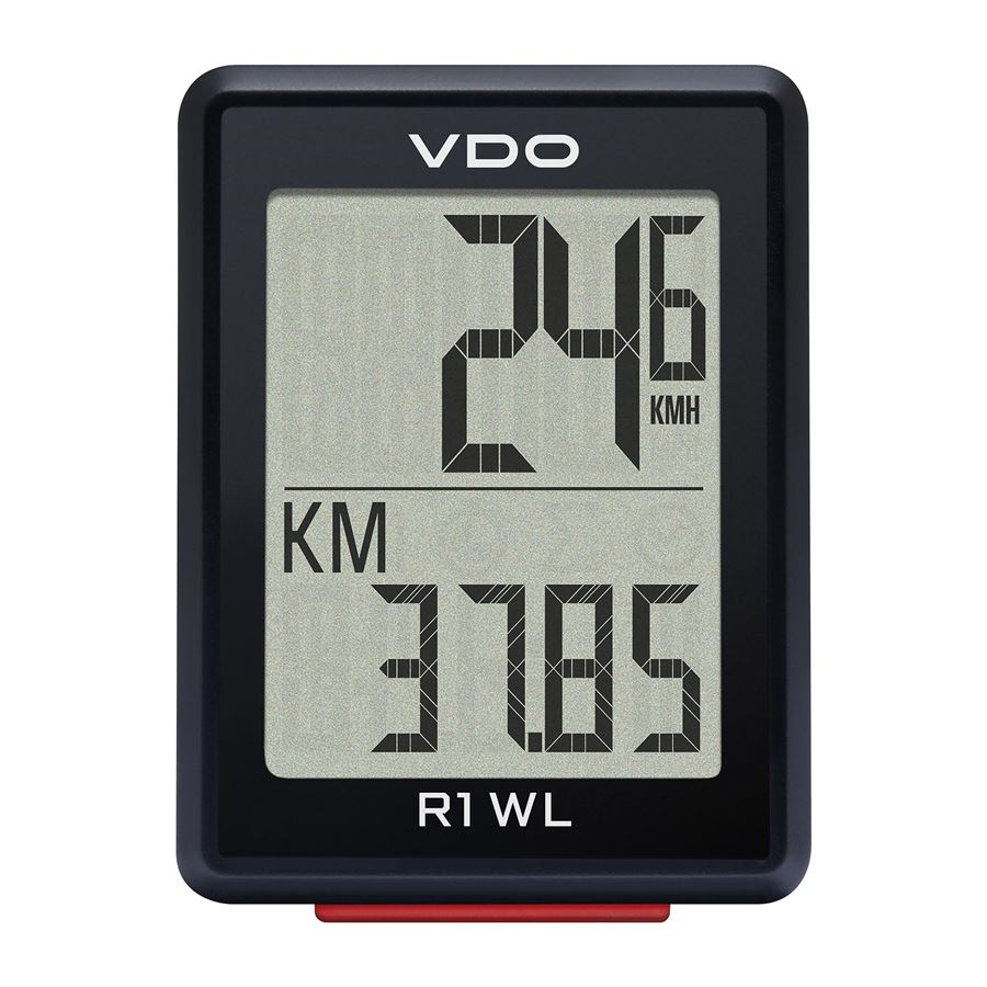 Základní bezdrátový computer VDO R1 WL je spolehlivým společníkem pro všechny, kteří chtějí mít na svých cyklo výletech přehled o pěti nejdůležitějších hodnotách – ať už při cestě do práce nebo při víkendovém výletu na kole. Velký, snadno čitelný displej computeru zobrazuje okamžitou rychlost, denní a celkovou vzdálenost, čas jízdy a hodiny. Pro větší přehlednost jsou jednotlivé funkce označeny ikonami. Nastavení a ovládání R1 WL je velmi snadné díky výraznému červenému funkčnímu tlačítku. Díky integrované tabulce plášťů je nastavení obvodu kol snadnou záležitostí. Držák na řídítka pro vodotěsný computer lze rychle namontovat na kolo pomocí přiložených stahovacích pásků. Computer lze poté snadno vyjmout a uschovat, čímž jej ochráníte před možným odcizením. Bezdrátový přenos dat zajišťuje analogový vysílač, který je umístěn na vidlici kola. Přiložená baterie (CR2032) postačí k napájení computeru po dobu delší než dva roky.