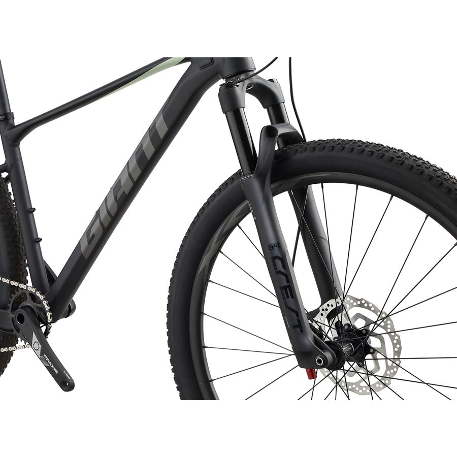 Oba nabízené modely jsou osazeny vzduchovou vidlicí Giant Crest 34 RRL se zdvihem 100 mm a zamykáním z řídítek. Pro lepší jízdní vlastnosti a zároveň menší riziko defektu jsou kola Giant XCT 29 přímo z výroby v bezdušové úpravě, stačí jen aplikovat těsnící tmel. Rám a vidlice pojmou pláště až do šířky 2,4“. Na kolo můžete případně nainstalovat i teleskopickou sedlovku, kterou oceníte především ve sjezdech a technických pasážích.